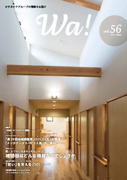 News HOME > NEWS > 広報誌Wa!第56号を掲載いたしました [2025年11月10日] 広報誌Wa!第56号を掲載いたしました 2025年Autumnの広報誌Wa!を掲載いたしました。 補聴器はどんな機械なのでしょうか 他 ぜひご覧ください。 « 前の記事