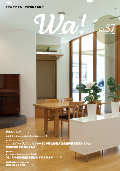 News HOME > NEWS > 広報誌Wa!第57号を掲載いたしました [2026年2月5日] 広報誌Wa!第57号を掲載いたしました 2026年Winterの広報誌Wa!を掲載いたしました。 「ここえどマップ」「ここえどカード」が厚生労働大臣最優秀賞を受賞しました 他 ぜひご覧ください。 « 前の記事